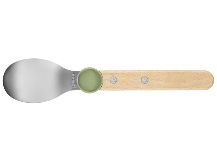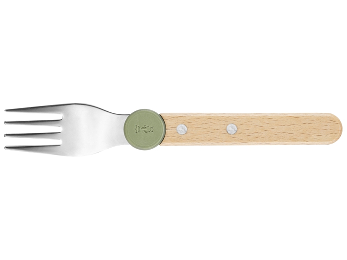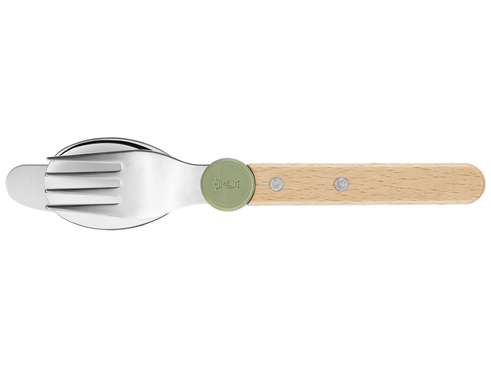 Wyprodukowane we Francji sztućce łączą w sobie rękojeść z drewna bukowego z certyfikatem PEFC z elementami ze stali nierdzewnej. Dzięki klipsowi z recyklingowanego plastiku są łatwe w montażu, przechowywaniu i transporcie.